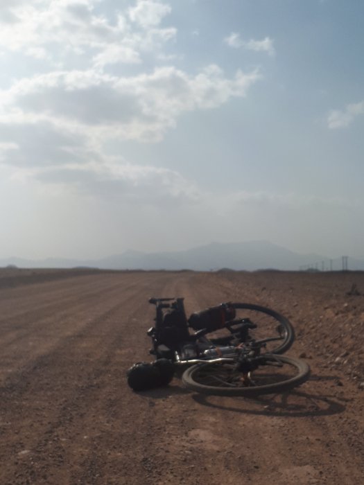 The wind still whipping a hoolie I decided to find a camp spot. Now I am hoping for a stealthy approach but the wind whipping the flywheel high in the air I think every Omani from here to Muscat knows where I am.