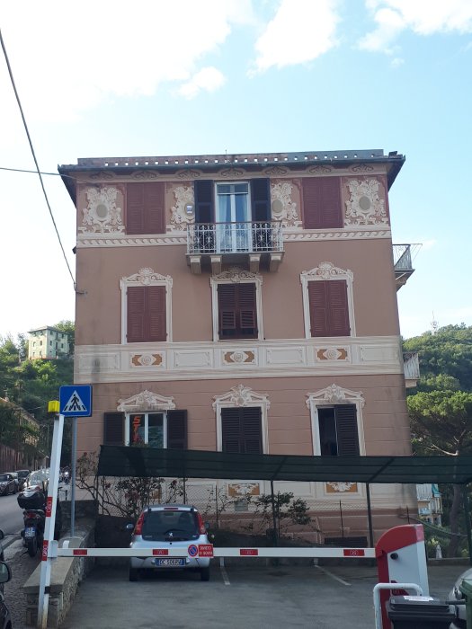 I staggered a bit as I let go of the bike and made my way to the camping reception. The heat today was so oppressive. I saw 41° on a pharmacy sign, that’s hot. Ewan and Maggs had not surfaced as i left the camp site. 07.30 I think. The coastal road was undulating and the continuous spectacular views spured me on. I’m interested many houses have relief painted onto then and even windows sometimes.
