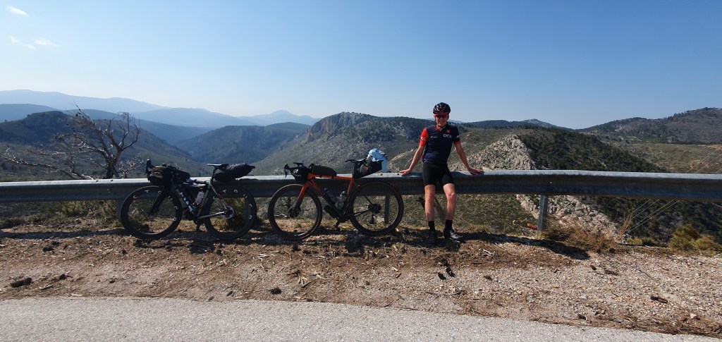 The route turned on us with a vengeance. Off road, gravel 🤔 its all in a personal definition. This vicious track massive stones bouncing our bikes left and right, throwing us off balance and a gradient way beyond what a road would give us. Our gears lowest 30 chainring 34 cassette way too high for this torture. Tempers frayed, thighs screamed and walking was an option. There could easily have been tears.