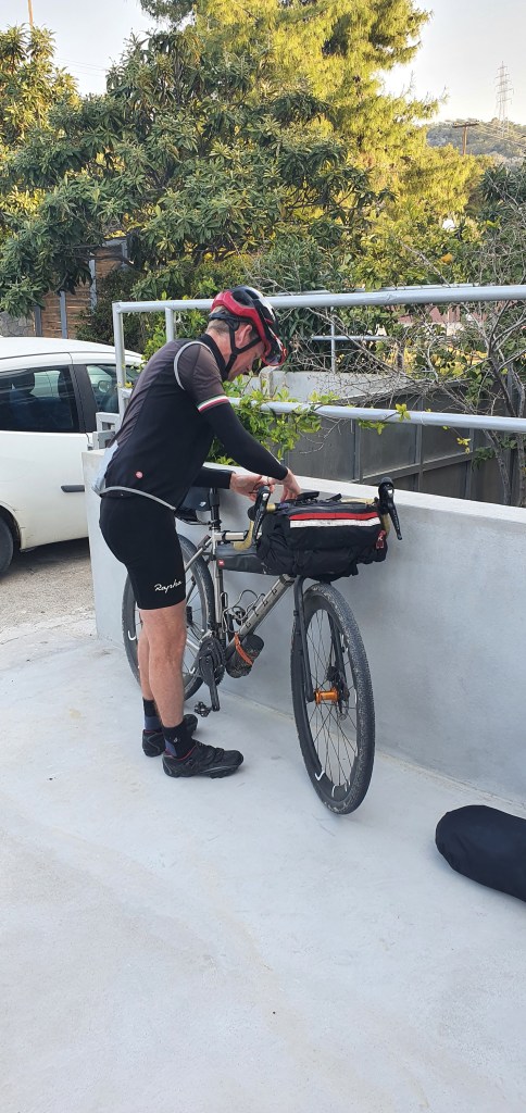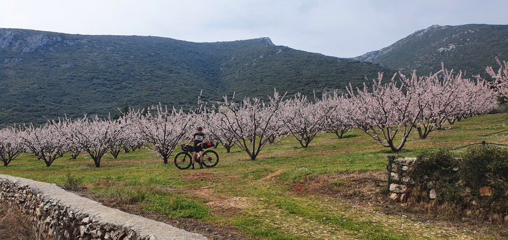 High up we rode/with ramps of 15 to 18% our tongs hanging out. Our one solace was knowing that once up there was only down toll the end of day. 800 meters up, then plunging down along sweeping roads with views 😲 into Napflio.