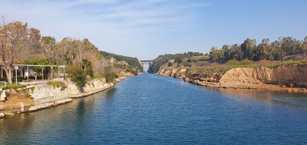 The Corinthian canal is spectacular. But from the other bridge, ours was particularly boring. You can see the other bridge in the photo.