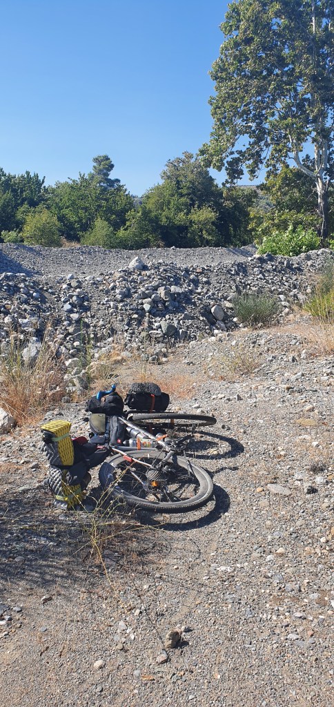 Garmin took me on a merry roundabout of mountains and many turnbacks, a bit of hike a bike, it was exhausting. But eventually I made my way to Milos camping in Eretria. I have rewritten the route hoping it is better from tomorrow.