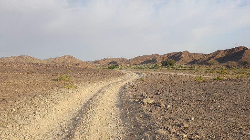 The route took me down to the Oman border. Now I’m innocent (naive, stupid, take your pick) there is a track by the border and i was happily trundling along making good time. I saw a jeep in front going very slow and as i was beside the guy opened the window and told me i could not ride there. I knew this would be a routing disaster. But it did dawn on me that the border track was not the place to be.