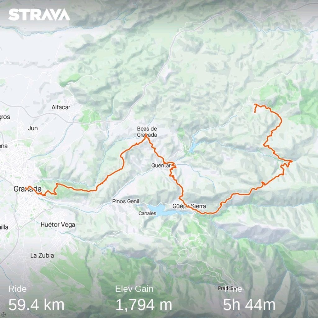 City lights make it feel like day but the road winds its way up to and past the Alhambra Palace. Then into the darkness I’m so pleased I organised my dynamo light thank you Christian at Cycle Cycles for sorting this. The route is followable on my Garmin but off road things are more complicated.