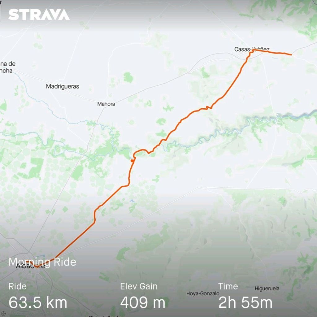Daily Disasters: Saddle broke, new saddle was a pain, no hotels available in Albacete. Too much gravel for these tyres. Really noisy neighbours. I only turned on the dot thing ¾ through the ride.