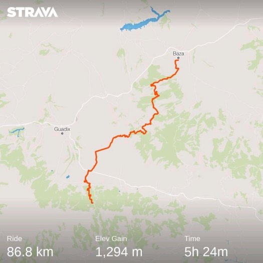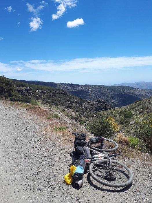I ate the sweet rolls I ate the bread.But the heat and successive climbing were taxing and finally I climbed a 2000meter pass and sped down some singletrack into Baza. It’s Hostal Casa Grande (Tel: 610927023 reservas@hostalcasagrande.es) for me tonight. I have successfully purchases some food for the on going journey.Slow to get organised but I get there eventually now to try and find where I am going to stow it.I was real shattered when I got to the pension. I showered and lay unable to move or think for a good hour. And walking to the supermarket was a struggle. I would pretend it’s going to be flat tomorrow but that’s just a joke.