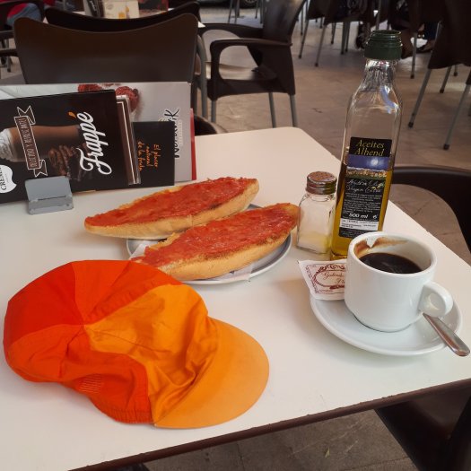 I had tomatoes on toast and a coffee, then I had it all again.As I was looking for my route I spotted a Pastaleria and promptly popped in for a pain au chocolate. I also bought 2 loaves of bread and some sweet rolls for the journey. I searched but couldn’t find a supermarket.The ride was up and up again. 95% off road.