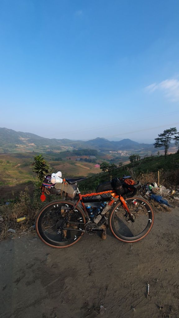 I knew it was going to be a tough day when once again my cadence had dropped to a snails pace. Sweat streaming out of my pores. Then tingly cold on the descents. Out of the hotel there was maybe 500 meters respite then up. I went over 2 high passes, just over 1500meters and then it was descents but a saw tooth descent and each climb was so steep.