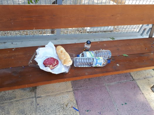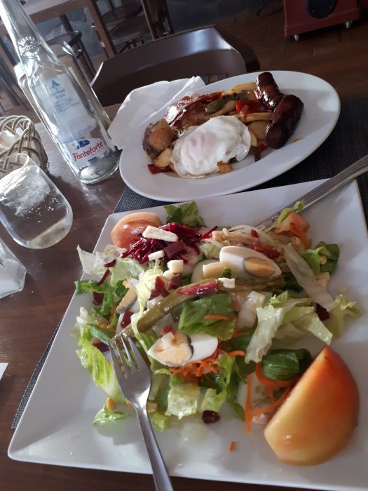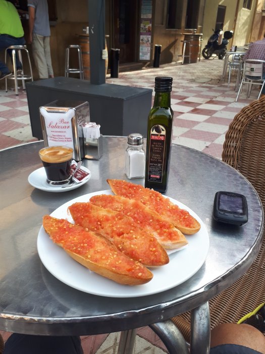 There was a long stretch of bike track along a disused railway line, the route was lovely. I had filled up my water bottles from the hotel tap, now some of you may think this is madness and in retrospect it probably was as it tasted disgusting. I struggled to find a shop but after a good few hours I found a restaurant. I ordered 3, 1.5 litre bottles, a cup of coffee and 2 tapas. Before the girl had brought me the coffee I had already drunk a whole bottle of water. I ordered another bottle, finished my food and went out to empty and fill my bottles.