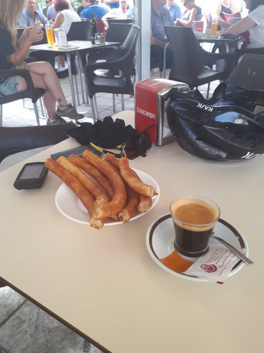 I went out of Gűejar Sierra, over the bridge and started a set of climbs of such brutality, 22%, 19% I saw on the signs, thanks Espania like I wanted to know that. I dropped my head and pumped my legs to a slow rhythm, it’s never good to be in so low a gear so early in the ride. 30 km of this is gonna be a bitch. Then I turned a corner, stopped for a coffee and the incline turned benign and it seemed to stick with that for the rest of the way.