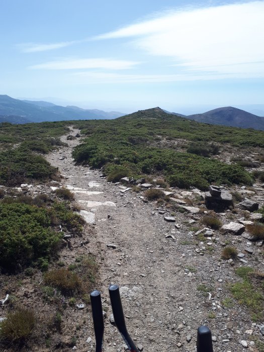 Then the tarmac stopped and it’s rough and tumble puffing a bit more but still a regular spin on the pedals. I did have to stop rest my head on my handlebars for a moment or two to catch my breath. The last 100m the bike on my shoulder I scrambled to the top.