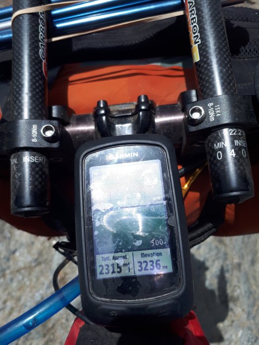 Near the top I checked how long I had been riding, it was then that I discovered I hadn’t pressed the start button on the Garmin…..I hope the route is recoverable.