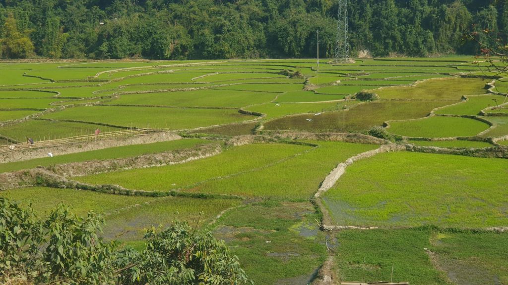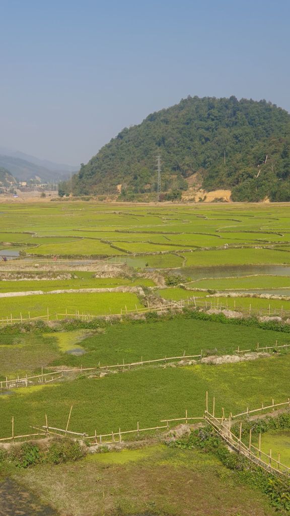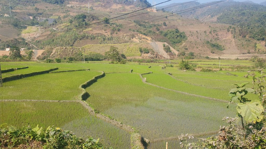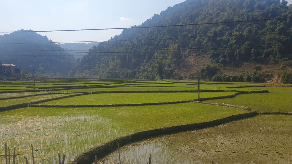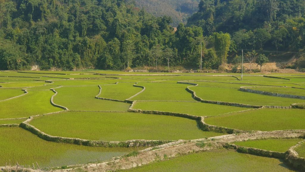 There were rice fields and mountain views.
