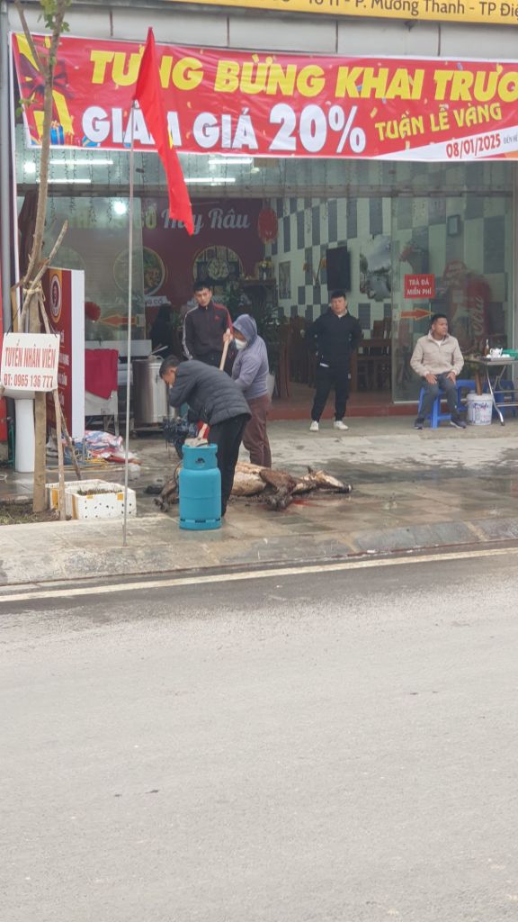 On the way there I saw this. Dead animal carcass being blowtorched and dug at with a spade..My little buns filled with cream were nice.