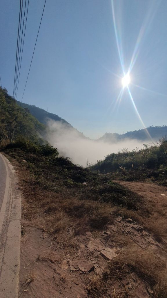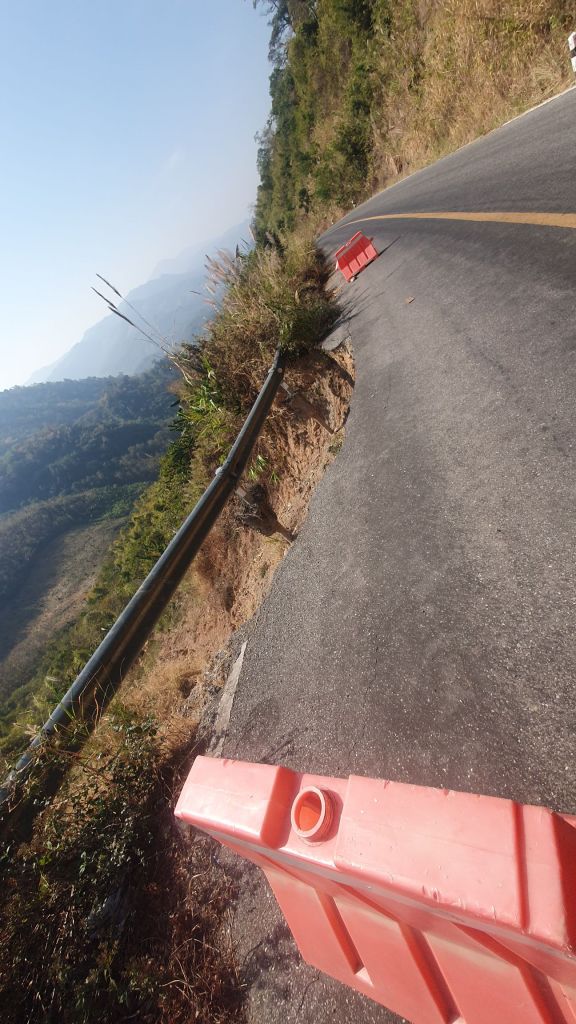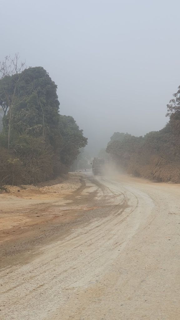 The mist was non existent in the town but as soon as I left town visibility lowered and the close intermittent potholes and wrecked road are hard to see.