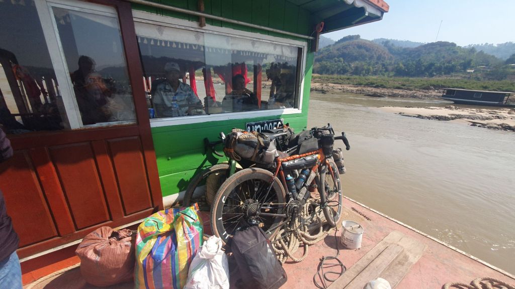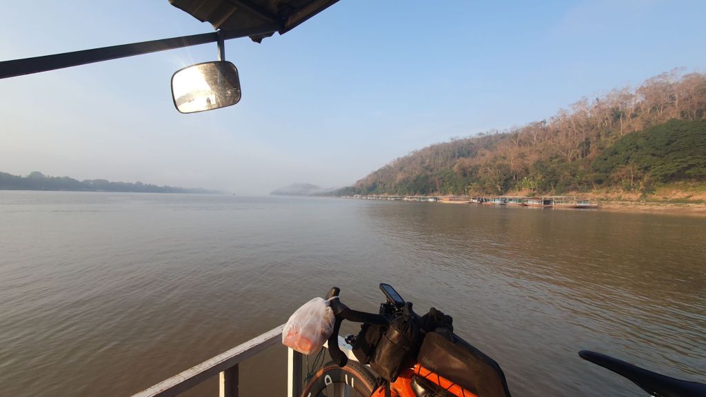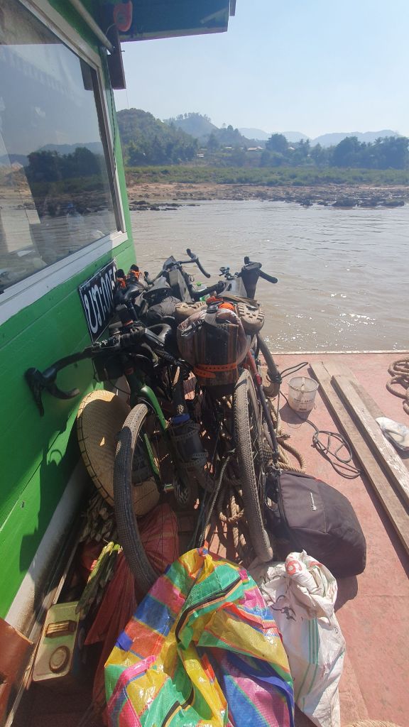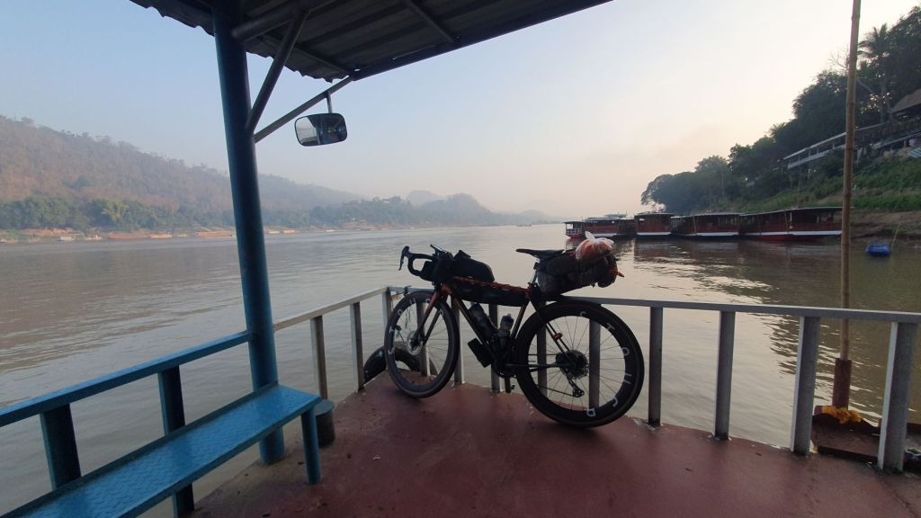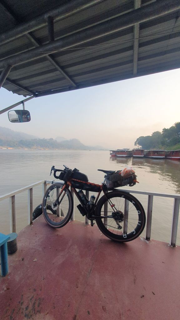 I was feeling pretty chipper this morning, days rest, clothes laundered, bike washed, chain waxed. Perfect timing for the ferry across the mighty Mekong River.